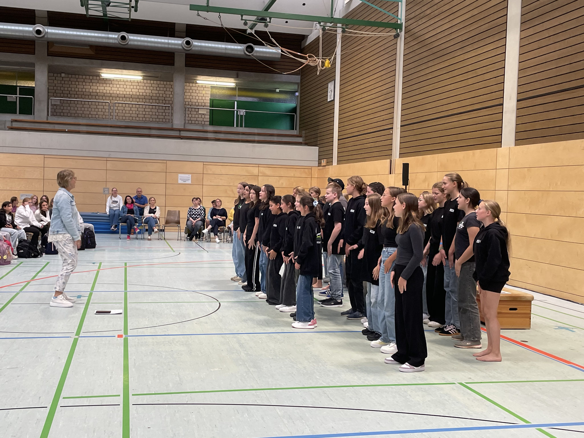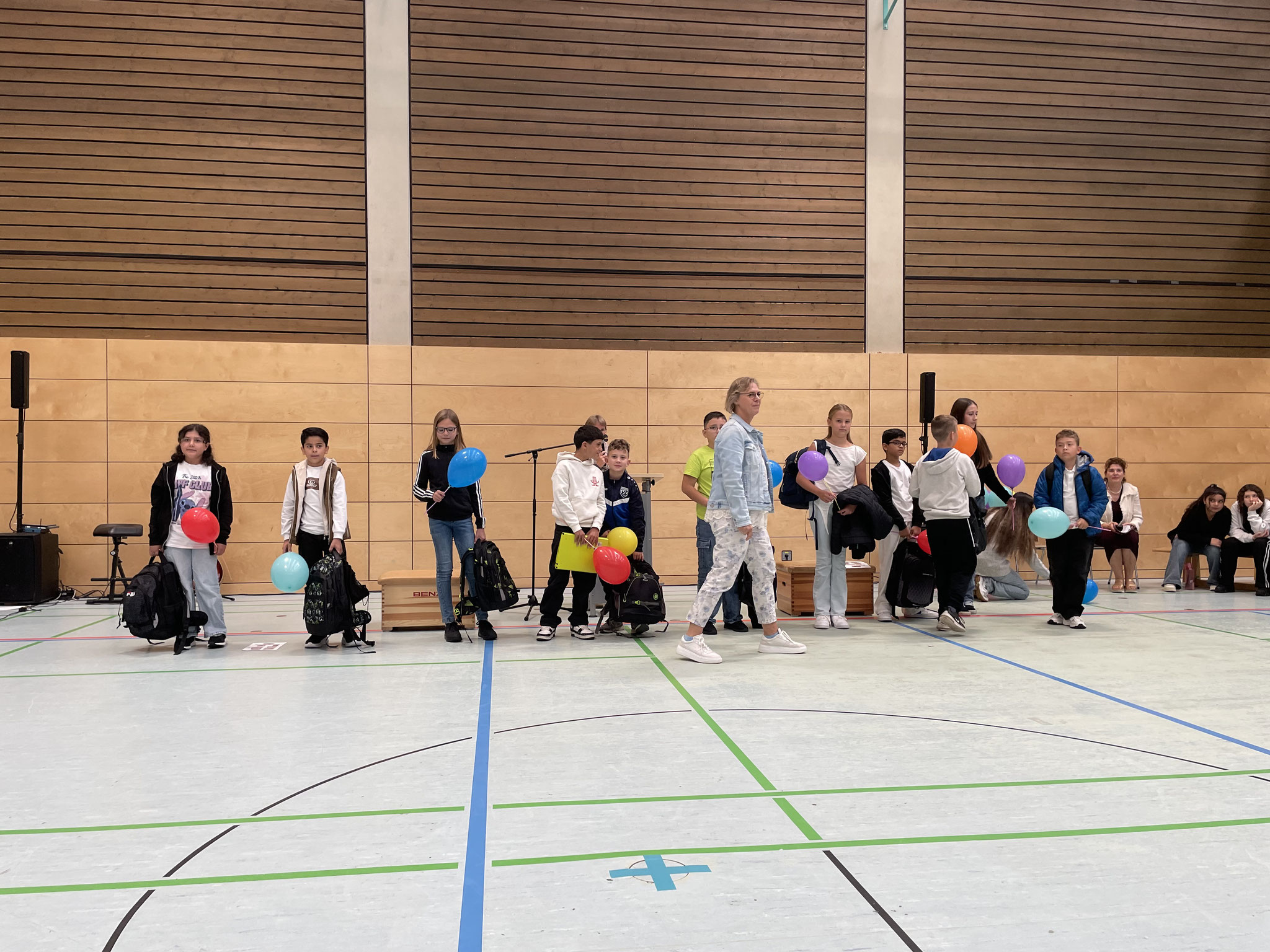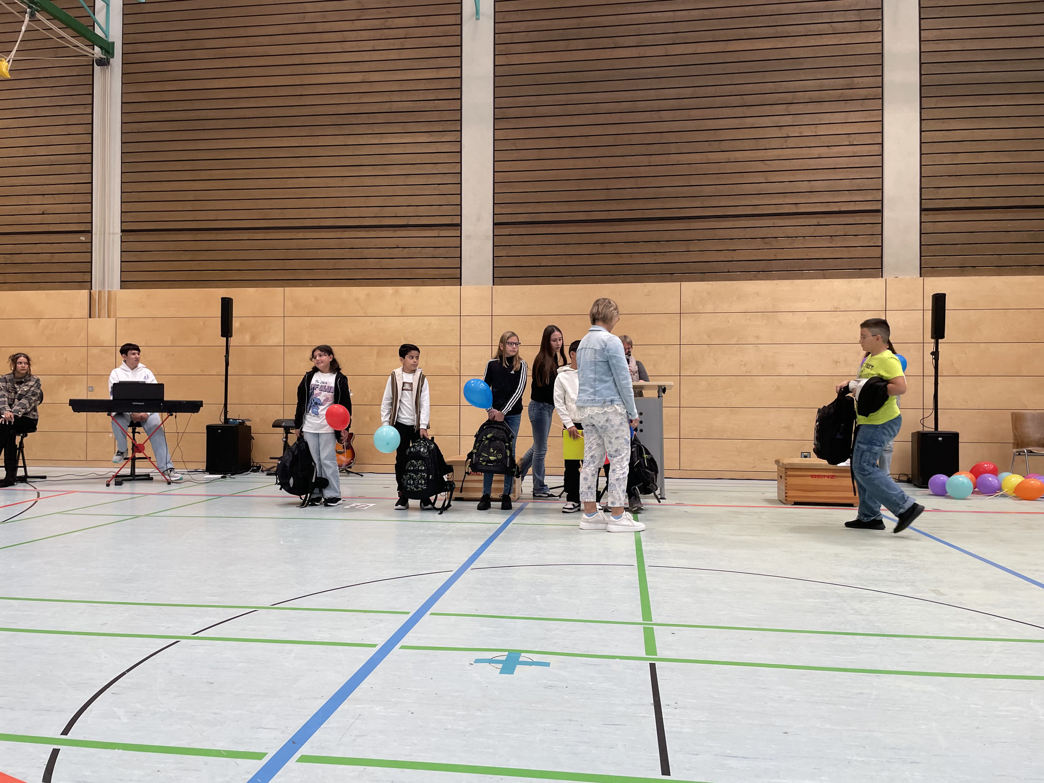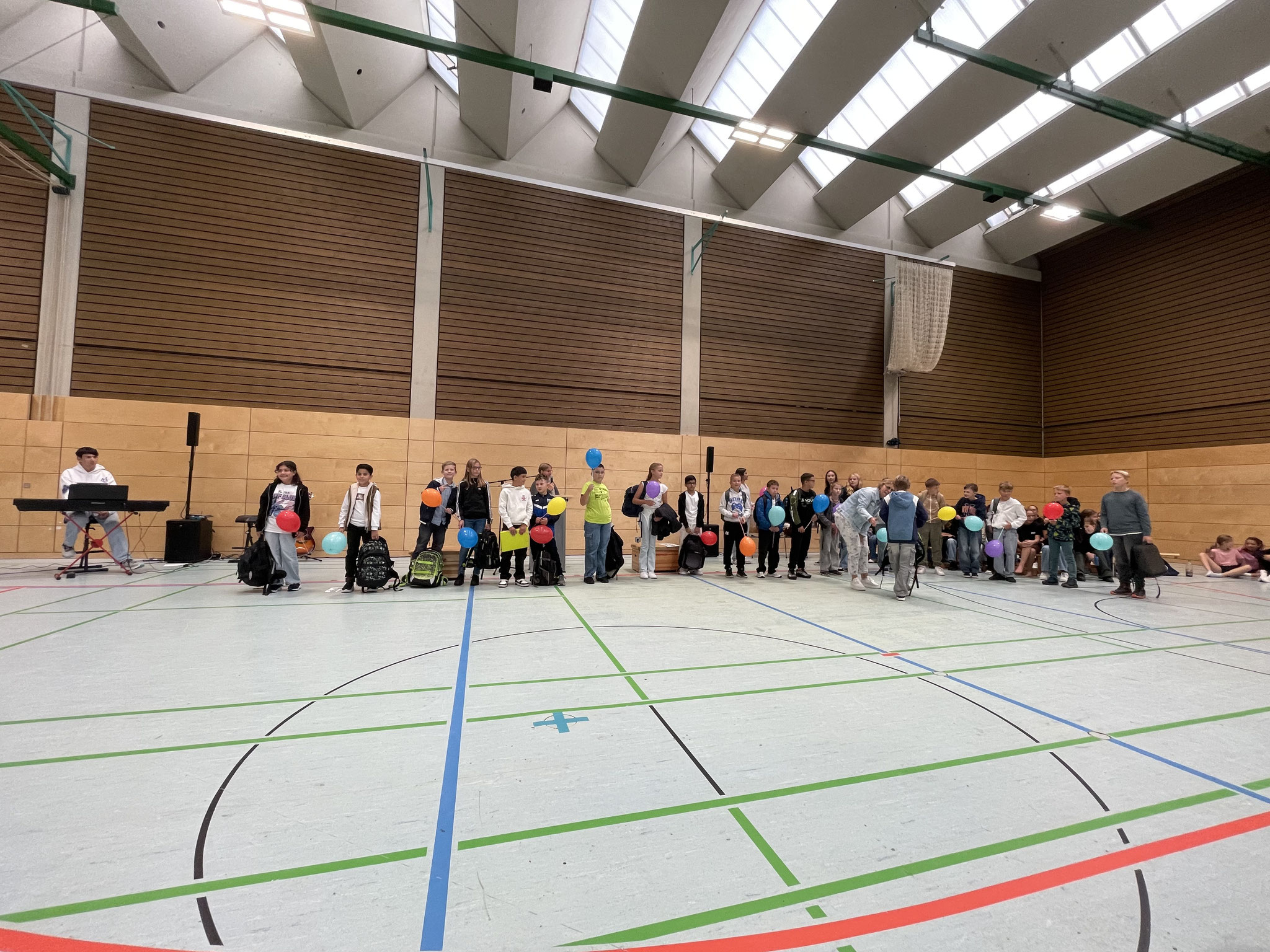 Am Dienstag, 16. September, konnten wir 47 neue Fünftklässler in unsere Schulgemeinschaft aufnehmen. Nach einer kurzweiligen, fröhlichen Aufnahmefeier in der Sporthalle mit Schulband und Schulchor ging es gleich mit den Klassenlehrerinnen und den Klassenpaten in die mit Spannung erwarteten neuen Klassenzimmer. Vielfältige Aktionen zum Kennenlernen und Eingewöhnen sorgten in der ersten Schulwoche dafür, dass die neuen Schülerinnen und Schüler sich zügig und angstfrei angekommen fühlen konnten.