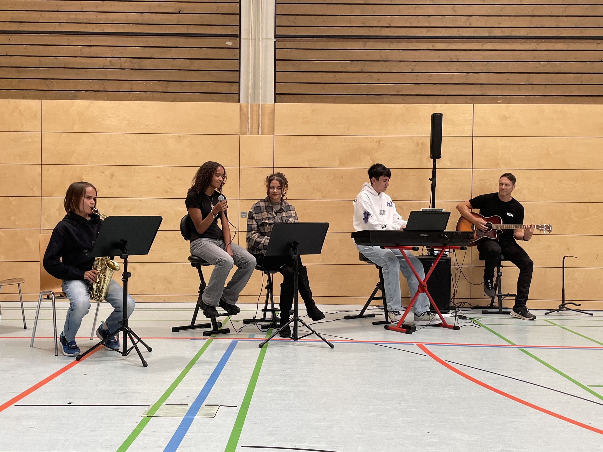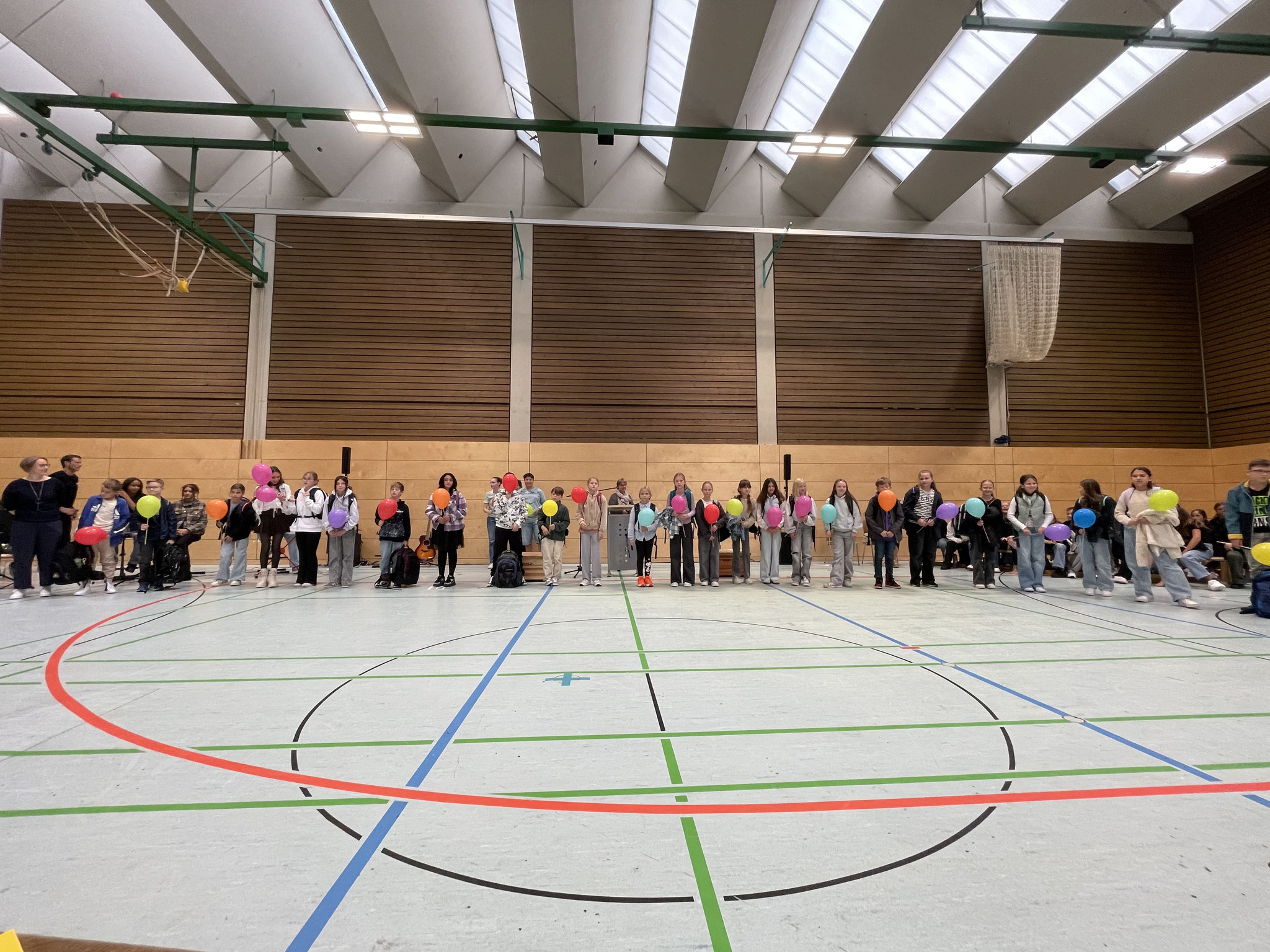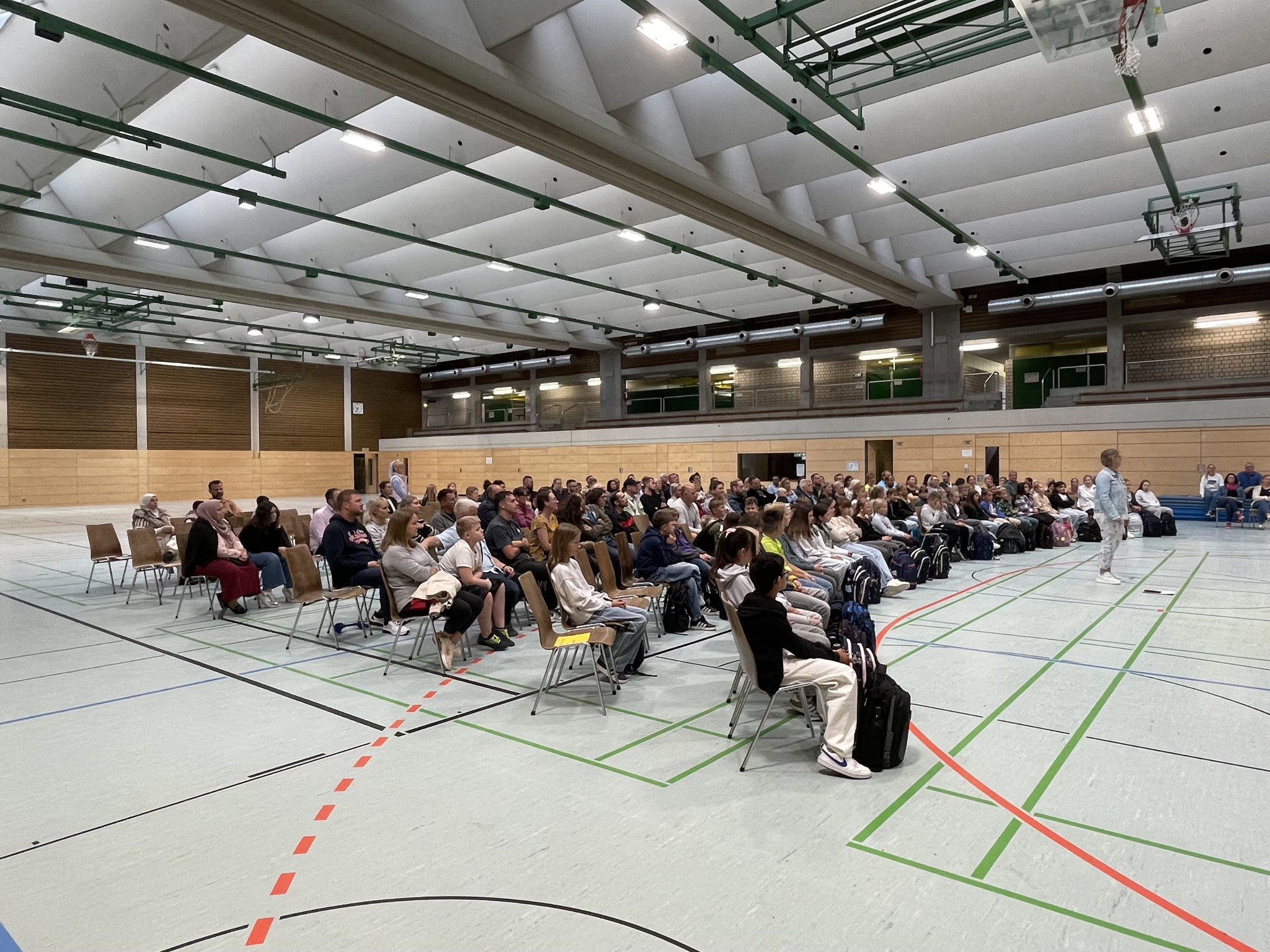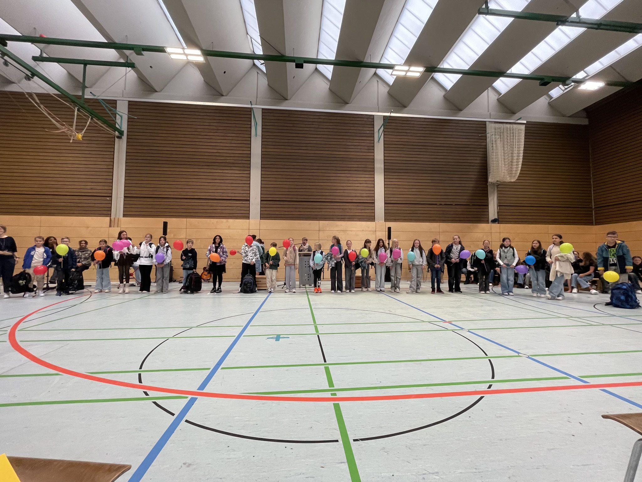 Am Dienstag, 16. September, konnten wir 47 neue Fünftklässler in unsere Schulgemeinschaft aufnehmen. Nach einer kurzweiligen, fröhlichen Aufnahmefeier in der Sporthalle mit Schulband und Schulchor ging es gleich mit den Klassenlehrerinnen und den Klassenpaten in die mit Spannung erwarteten neuen Klassenzimmer. Vielfältige Aktionen zum Kennenlernen und Eingewöhnen sorgten in der ersten Schulwoche dafür, dass die neuen Schülerinnen und Schüler sich zügig und angstfrei angekommen fühlen konnten.